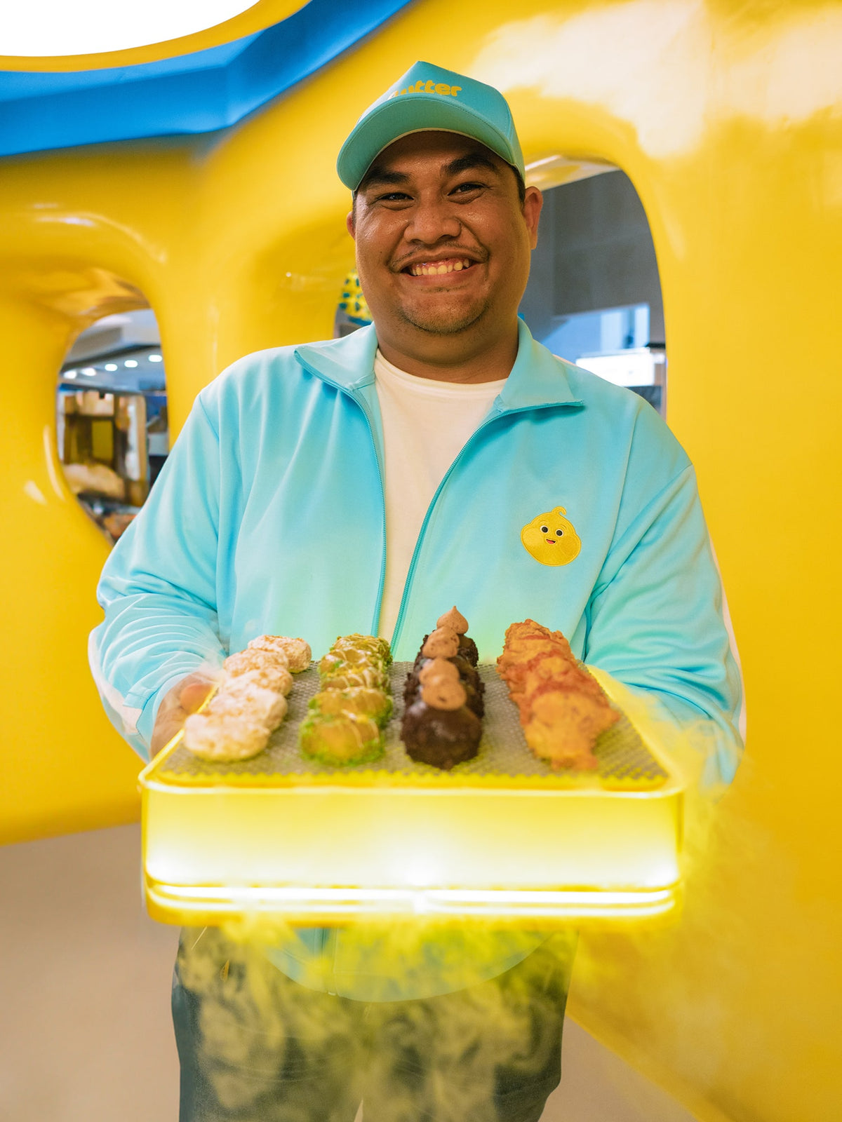 Butterlandia, a paradise planet where Butterfolk lived happily for trillions of years, was in trouble. A brave explorer named Butter Baby ventured into space to find a new source of butter to restore balance to their world. On his adventure, he discovered weird and wonderful worlds before his craft fell into a wormhole and was spat out onto a tiny blue planet (which we now know as ‘Earth’). With the help of a friendly butter-loving creature called a ‘humblabub’, or ‘human’, he discovered butter so flavourful, so rich, and so abundant. Butterlandia was saved! Butter Baby adored Earth, and so he remained, making traditional Butterlandian treats for all the friendly humblabubs from his store in Blok M, Jakarta.