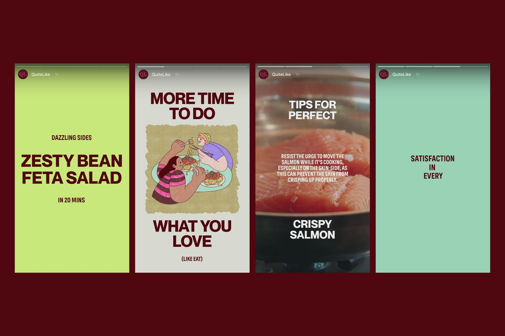 QuiteLike is known for serving up delicious moments by the boxful, but to stand out in a crowded, discount-driven category, they needed a brand that delivers as much excitement and flair as their meal kits. Guided by the brand idea of “deliciously rewarding” and the promise of meaningful, memorable moments through food, we cooked up a new look that celebrates the delight in every step and bite.